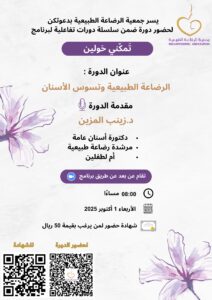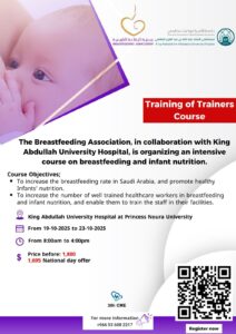 دورة إعداد مدربين في الرضاعة الطبيعية وتغذية الرضع بالتعاون مع مستشفى الملك عبدالله الجامعي من 19 إلى 23 أكتوبر 2025 بالرياض