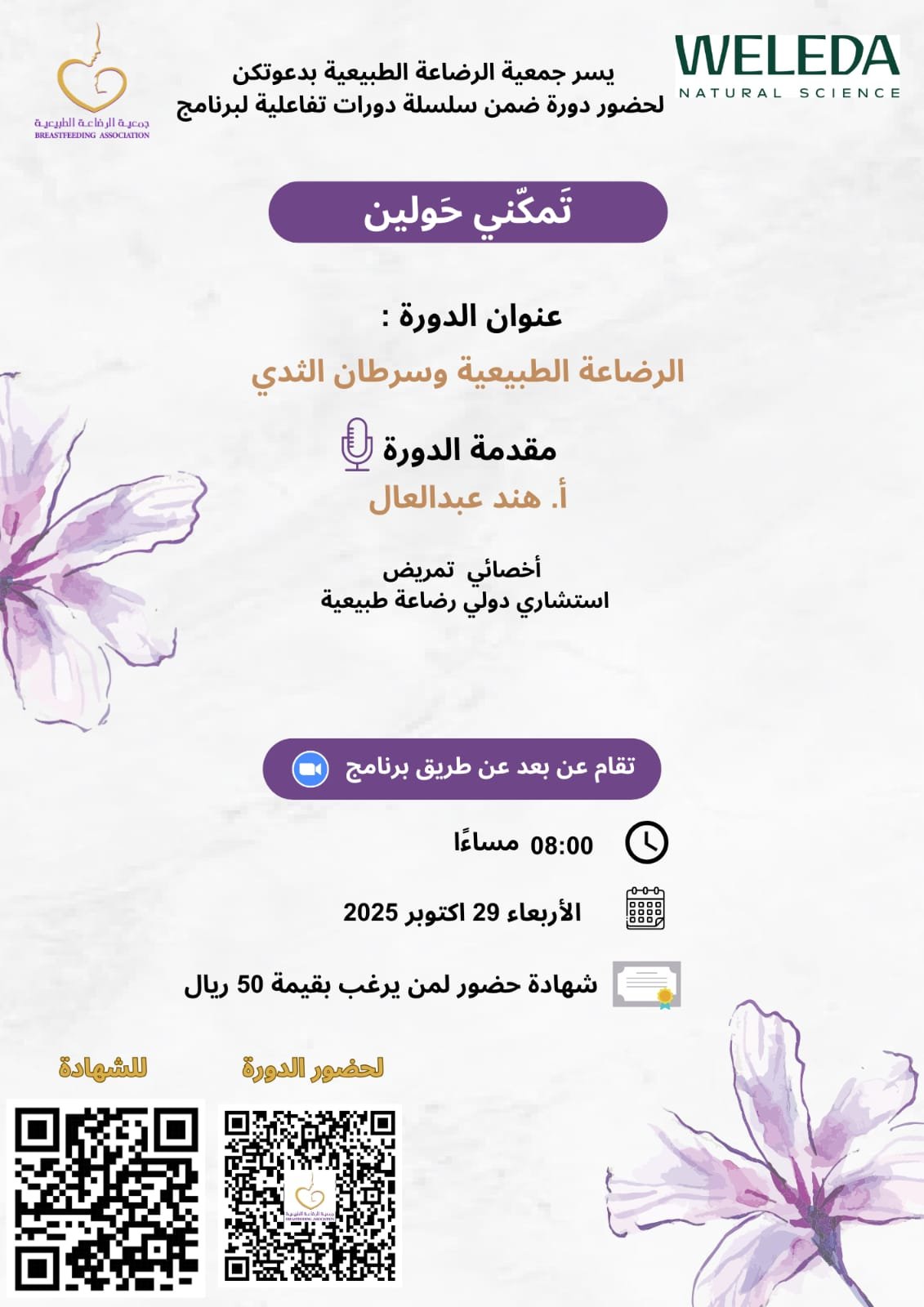 جمعية الرضاعة الطبيعية تدعوكم لحضور سلسلة دورات تفاعلية لبرنامج تمكني حولين