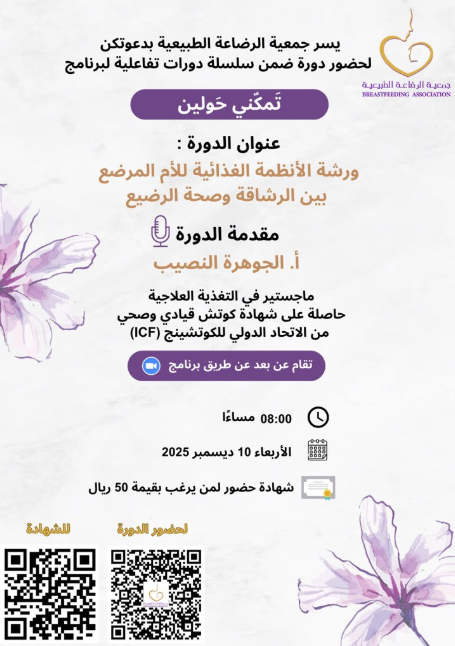 جمعية الرضاعة الطبيعية تدعوكم لحضور سلسلة دورات تفاعلية لبرنامج تمكني حولين